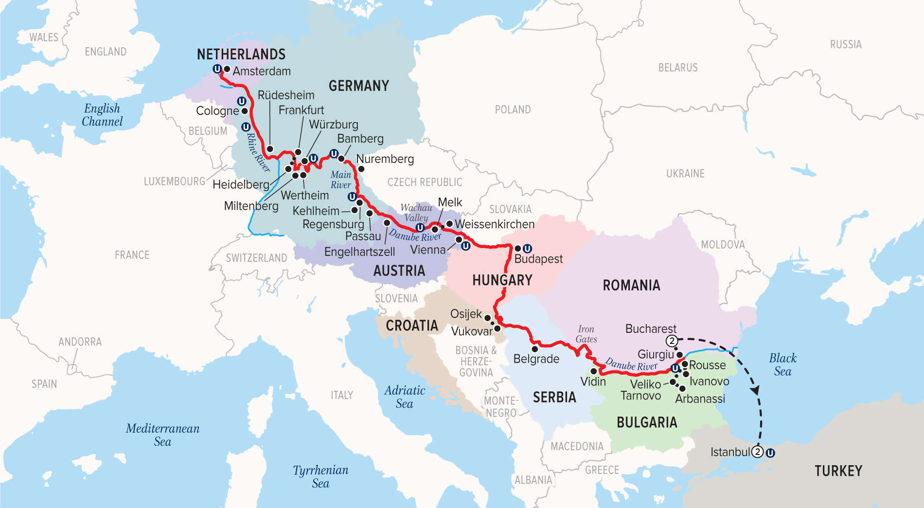 Discover the best of Europe on one grand journey from the North Sea to the Black Sea.